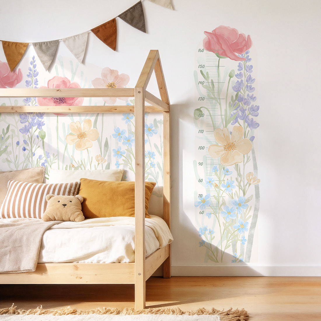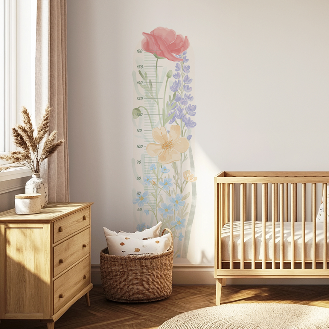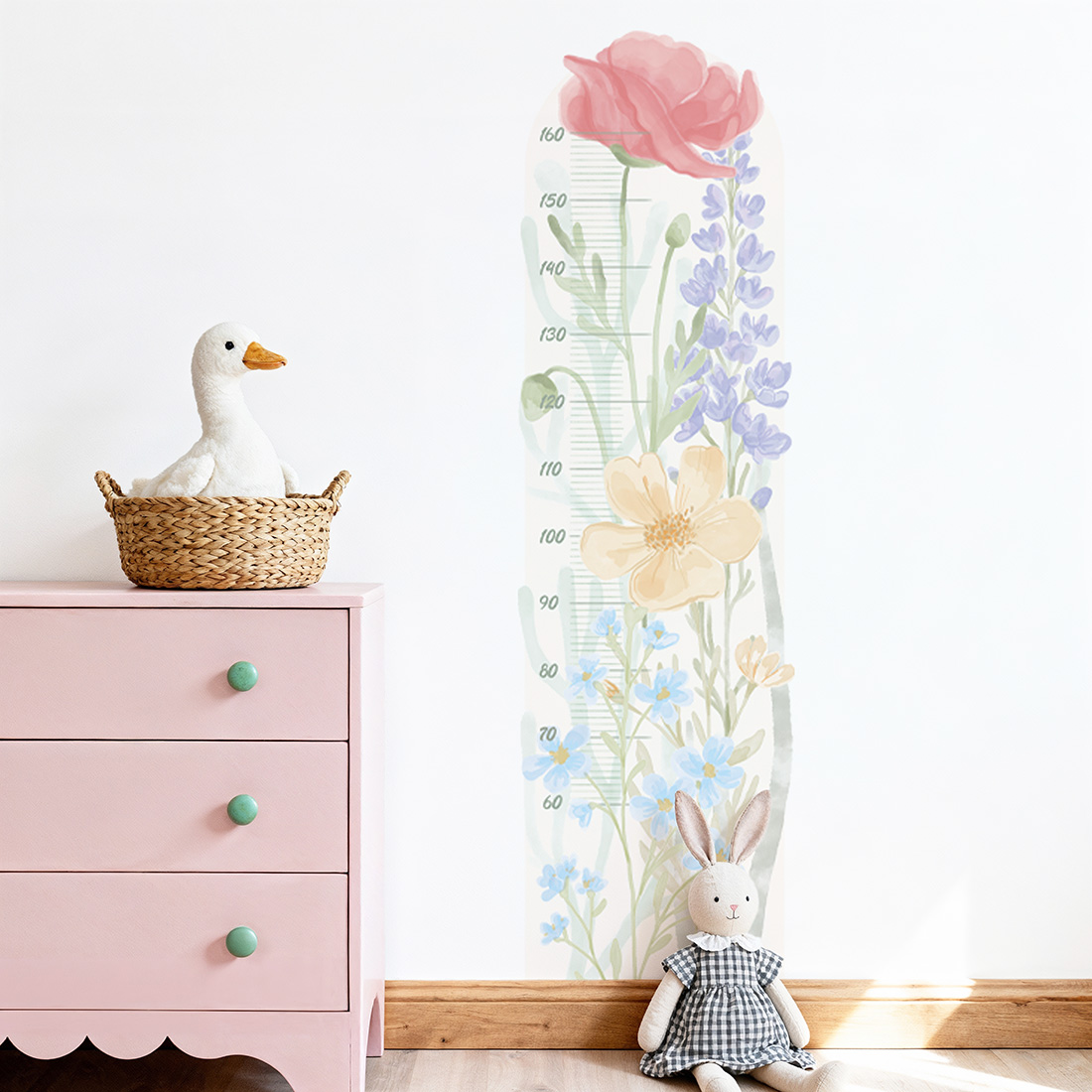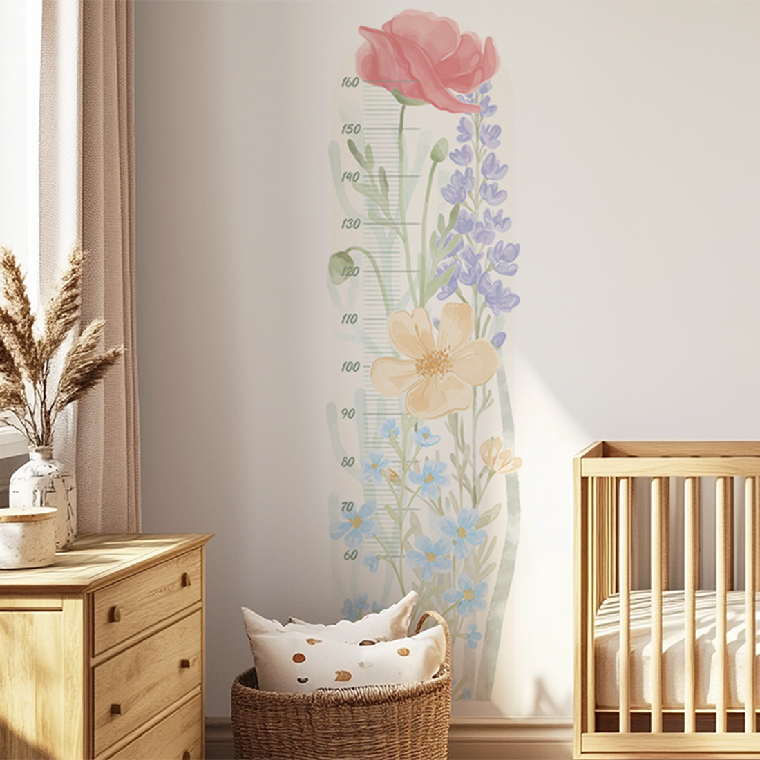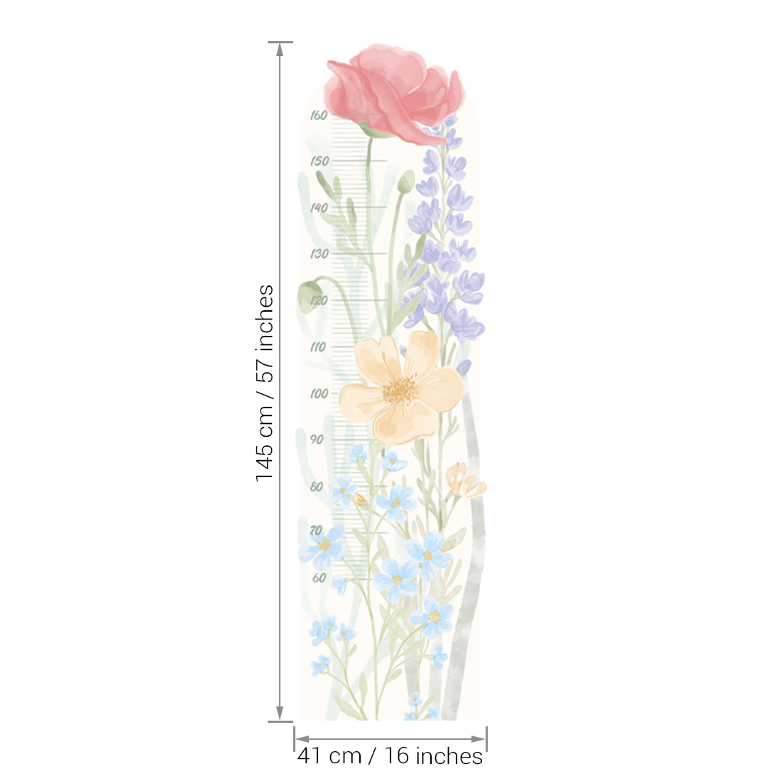 Naklejka na ścianę miarka wzrostu - "miarka wiosenny ogród" to piękna i praktyczna dekoracja, która pozwoli obserwować, jak Twoje dziecko rośnie każdego dnia. Subtelne akwarelowe kwiaty inspirowane wiosenną łąką tworzą wyjątkową kompozycję pełną lekkości, kolorów i naturalnego uroku.